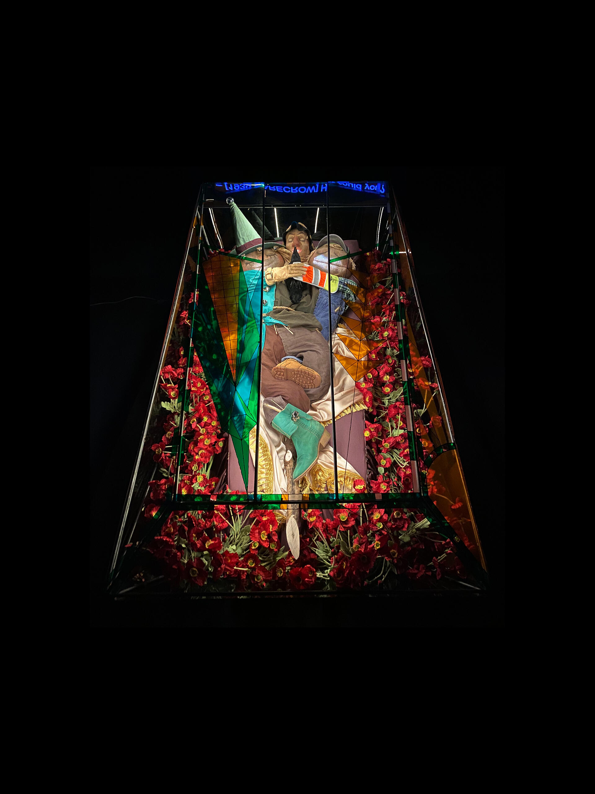 Leo Elia (born 1998 in Berlin) is a German “Post-Socialist Futurist“ artist. His work unfolds in expansive narrative cycles. Each cycle integrates a range of techniques, including sculpture, drawing, painting, sound, performance, and video.A recurring theme in Elia’s practice are cycles of promise and disappointment. He frequently overlays disparate historical timelines and treats entertainment media as documentary evidence, tracing continuities between the past, the present, the future and fantasy. His work often implicitly engages with the legacy of the GDR and the aftermath of the Wende.Born to East German parents, Elia grew up in Berlin-Mitte during the gentrifying surge of the 1990s, surrounded by the debris of socialism. His father, a former advertising professional, introduced him to marketing tactics by analyzing Super Bowl commercials. A formative encounter with Yoko Ono in his teens prompted him to pursue art.